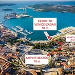 Ova apartmana površine 67 m² smještena je u centru Pule te nudi sobe s pogledom na grad i Wi-Fi tijekom cijelog objekta. Zračna luka Pula udaljena je 0,5 km od apartmana.